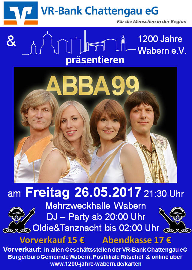 Mit freundlicher Unterstützung der Im Jahre 1982 löste sich die legendäre ABBA-Band auf und ließ Millionen Fans zurück. Bereits seit 1992 hat es sich die Cover-Band „ABBA99“ zum Ziel gemacht, die unvergleichlichen und zeitlosen Hits der schwedischen Popgruppe so authentisch wie möglich wieder aufleben zu lassen.
