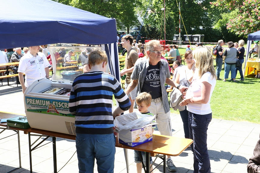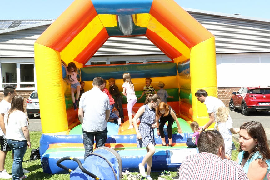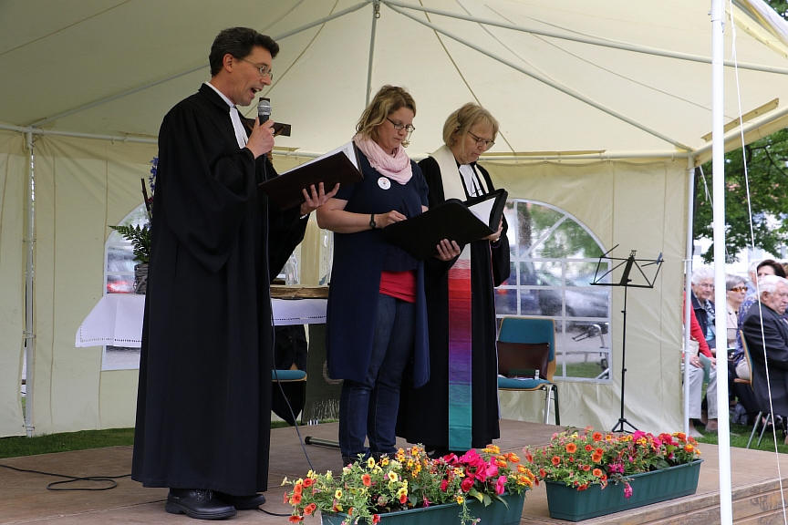 Familienfest Wir starteten um 11:00 Uhr, bei herrlichstem Wetter, mit einem evangelischen Gottesdienst zum Himmelfahrtstag, der vom Posaunenchor und dem Chorverein umrahmt wurde. Die Gestaltung erfolgte zusammen mit der bdks.