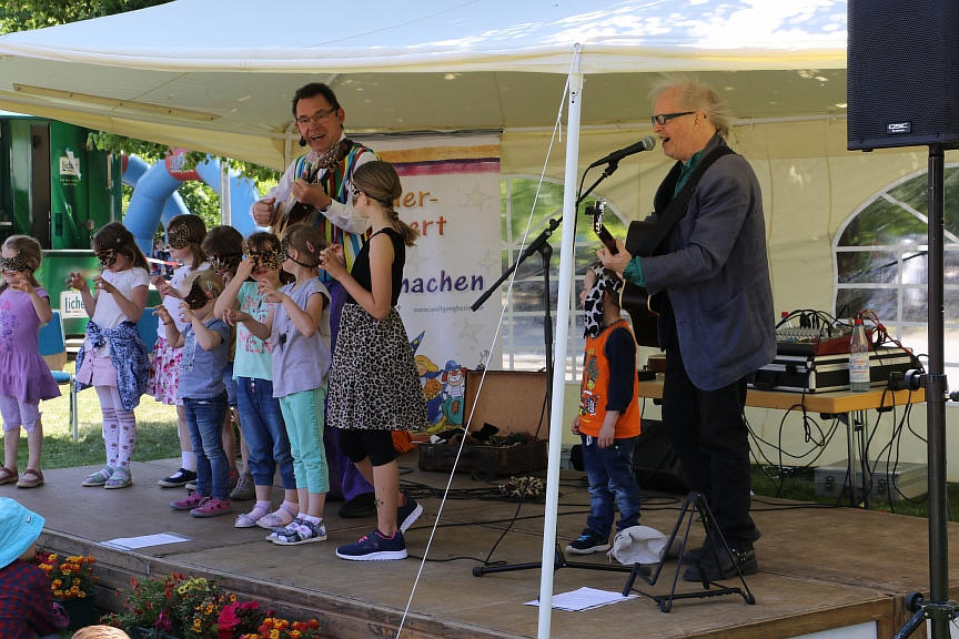 Um 13:00 Uhr präsentierte Wolfgang Herig mit dem Duo Kunterbunt sein neues Programm „Sommer, Sonne, blaues Meer“ in einem fetzigen Mittmachkonzert . Wer träumt nicht gerne von einem sonnigen Tag am Strand? Wenn Krabben hinter Krabben krabbeln und am Abend ein grooviges Live-Konzert der Flüstermännchen steigt? Mit eingängigen Melodien und amüsanten Texten war dieses Konzert ein Spaß für die kleinen (aber auch die größeren) Besucher.